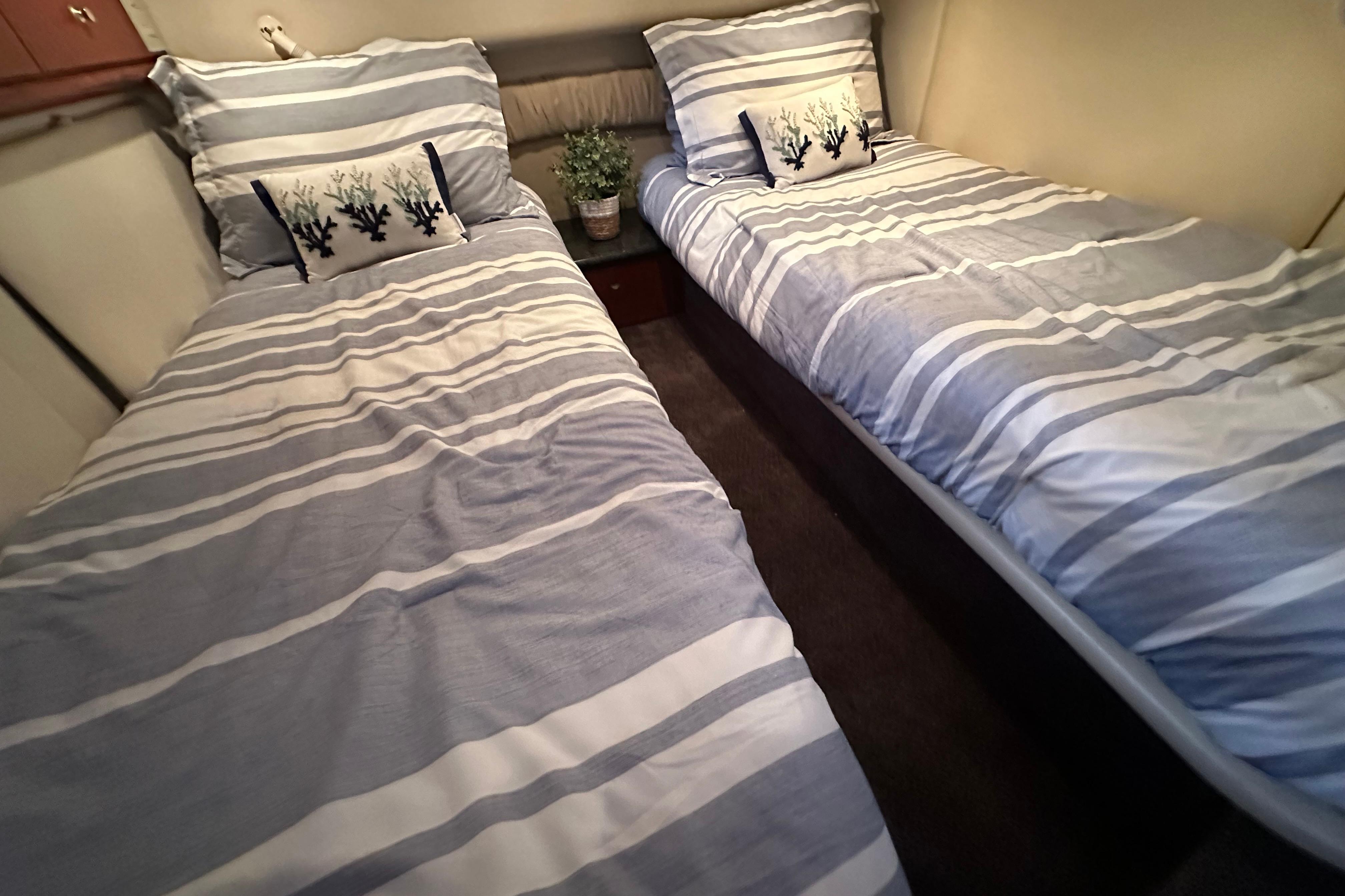 Introducing the stunning 2000 Maxum 4600 SCB, a remarkable flybridge vessel that combines elegance with performance. With an overall length of nearly 46 feet, this used beauty boasts a modified Vee hull crafted from durable fiberglass, ensuring stability and a smooth ride on the water. Powered by twin Cummins 6BTA inboard engines, each delivering an impressive 375 horsepower, this boat offers a cruising speed of 21 mph, making it perfect for both leisurely outings and adventurous excursions. With just under 1,000 hours on each engine, you can trust in its reliability and performance. Designed for comfort, the Maxum 4600 SCB features two heads, providing convenience for you and your guests. This vessel is an ideal choice for those seeking a blend of luxury and functionality, ready to create unforgettable memories on the water.