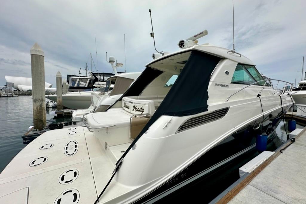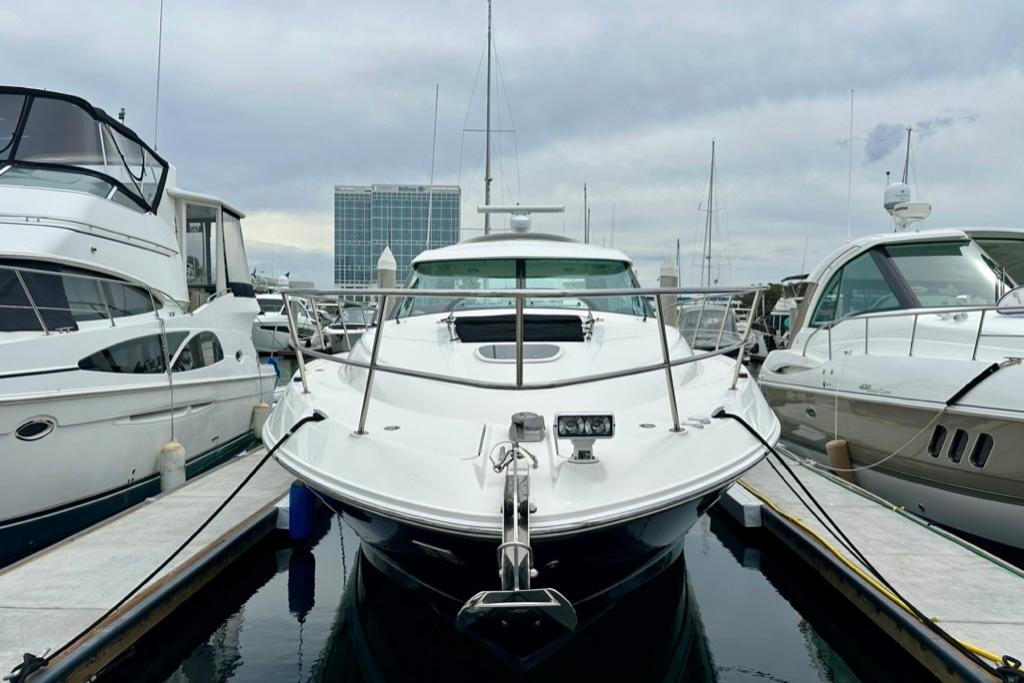 Introducing the stunning 2011 Sea Ray 450 Sundancer, a remarkable cruiser that embodies luxury and performance. With an overall length of 45 feet, this vessel features a sleek fiberglass hull with a modified vee shape, ensuring stability and smooth navigation on the water. Powered by by twin Cummins QSB inboard engines, each delivering an impressive 480 horsepower, the 450 Sundancer boasts a cruising speed of 30 knots and a maximum hull speed of 35 knots, making it perfect for exhilarating adventures. The boat accommodates two well-appointed cabins and one head, providing comfort for you and your guests. Equipped with an electronic windlass, this vessel enhances your boating experience, making anchoring effortless. Whether you\'re cruising along the coastline or enjoying a weekend getaway, the Sea Ray 450 Sundancer promises an unforgettable experience on the water, combining elegance with exceptional performance.