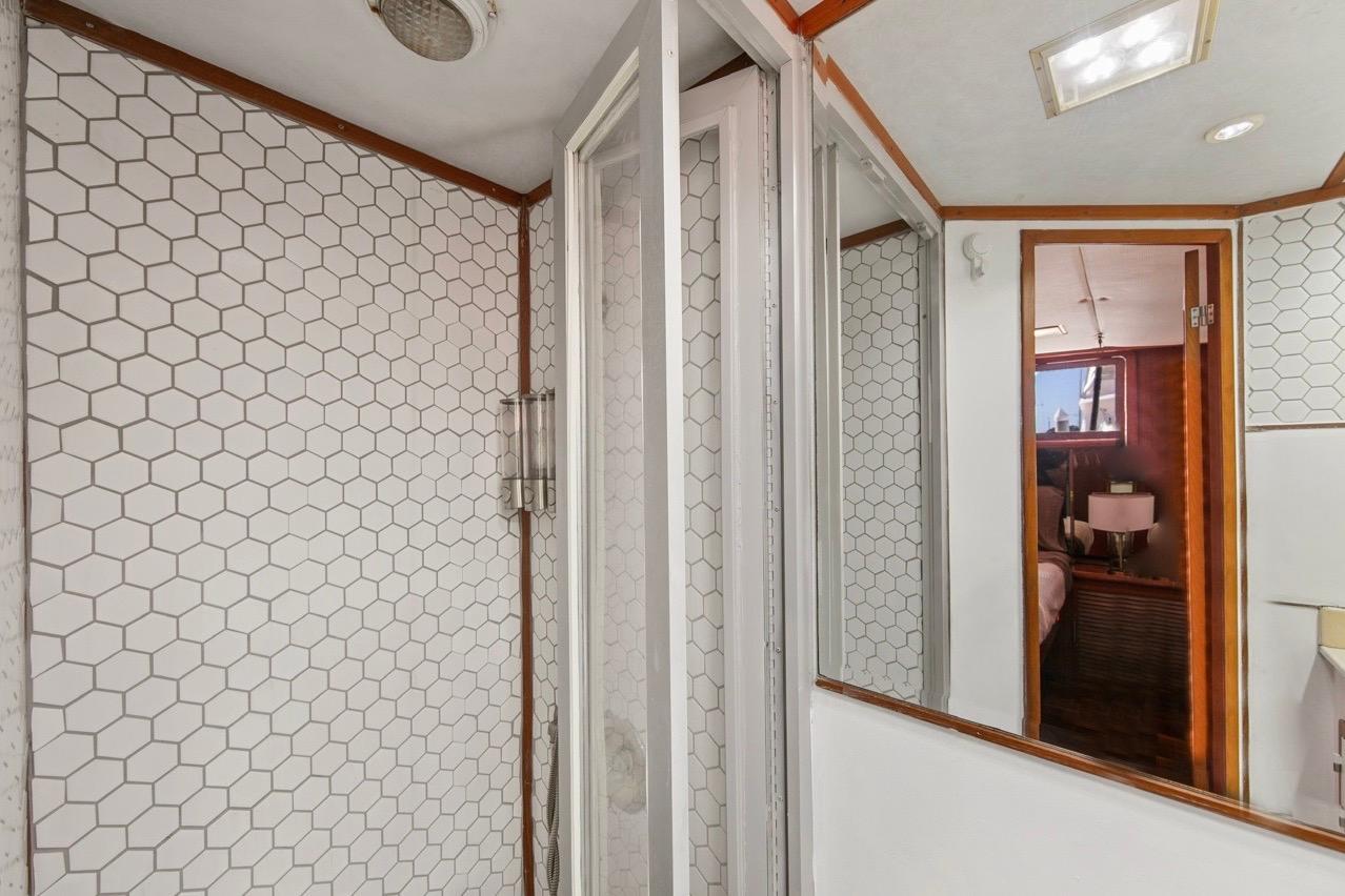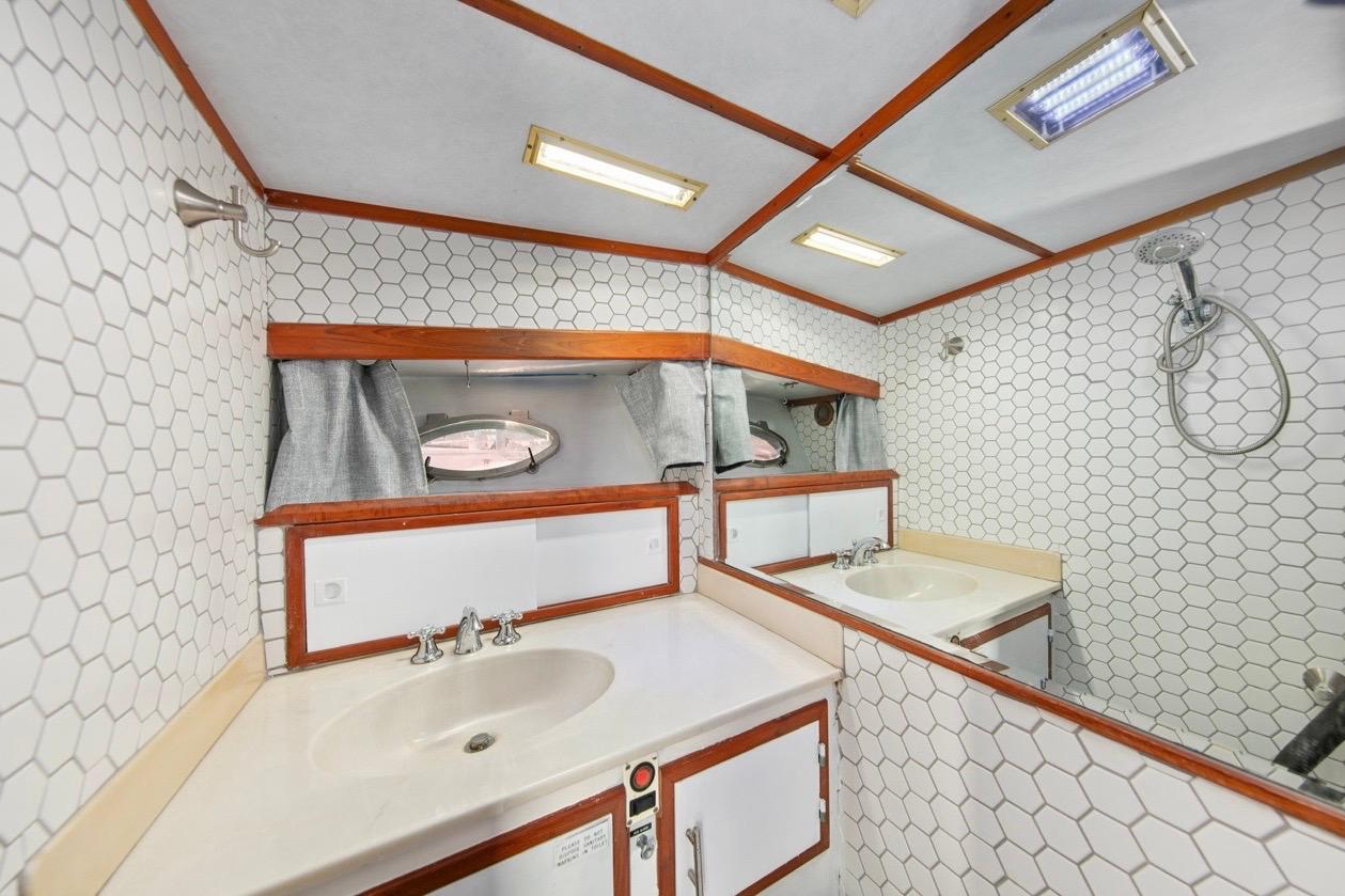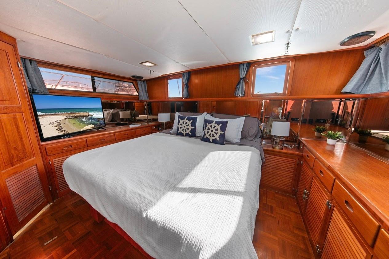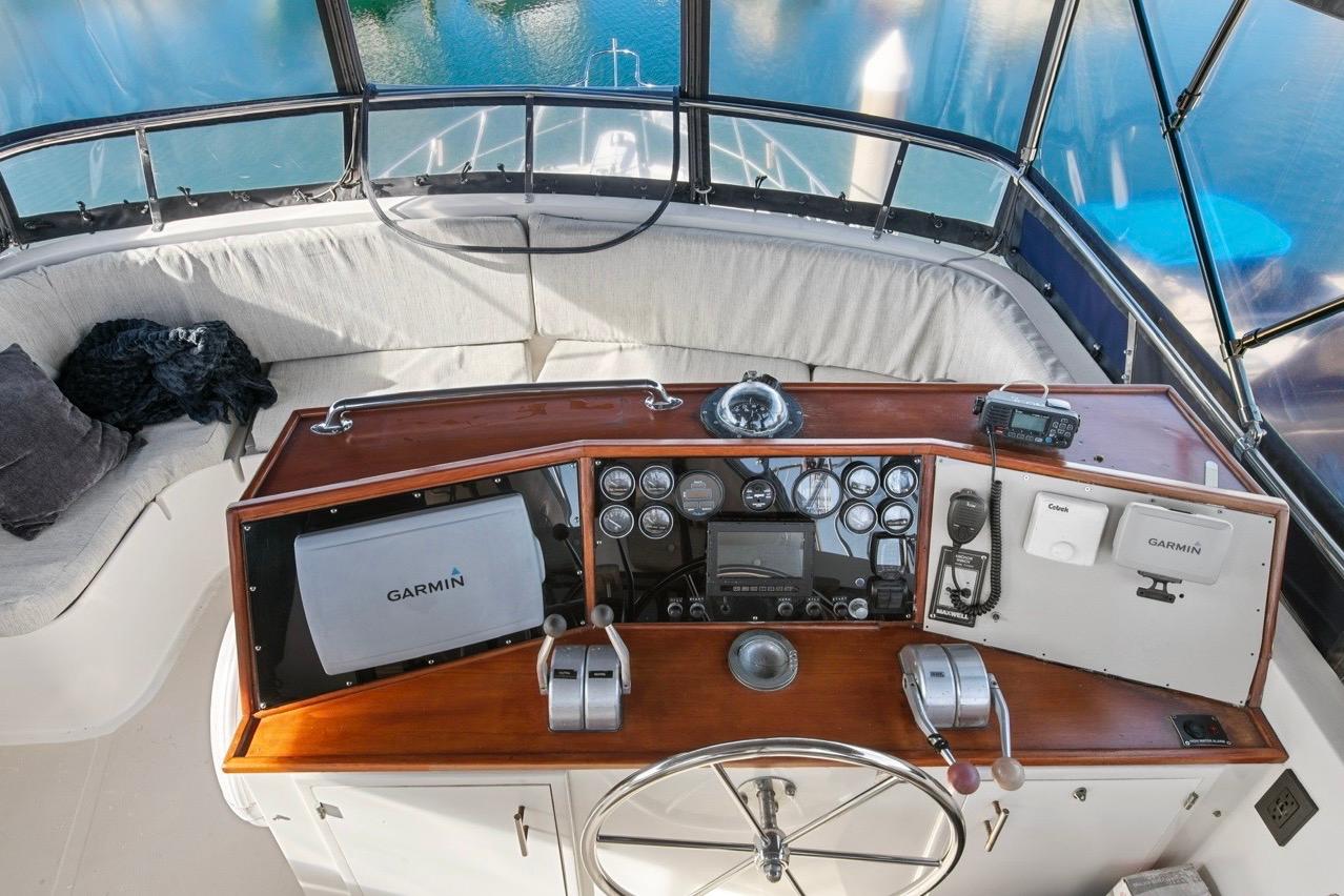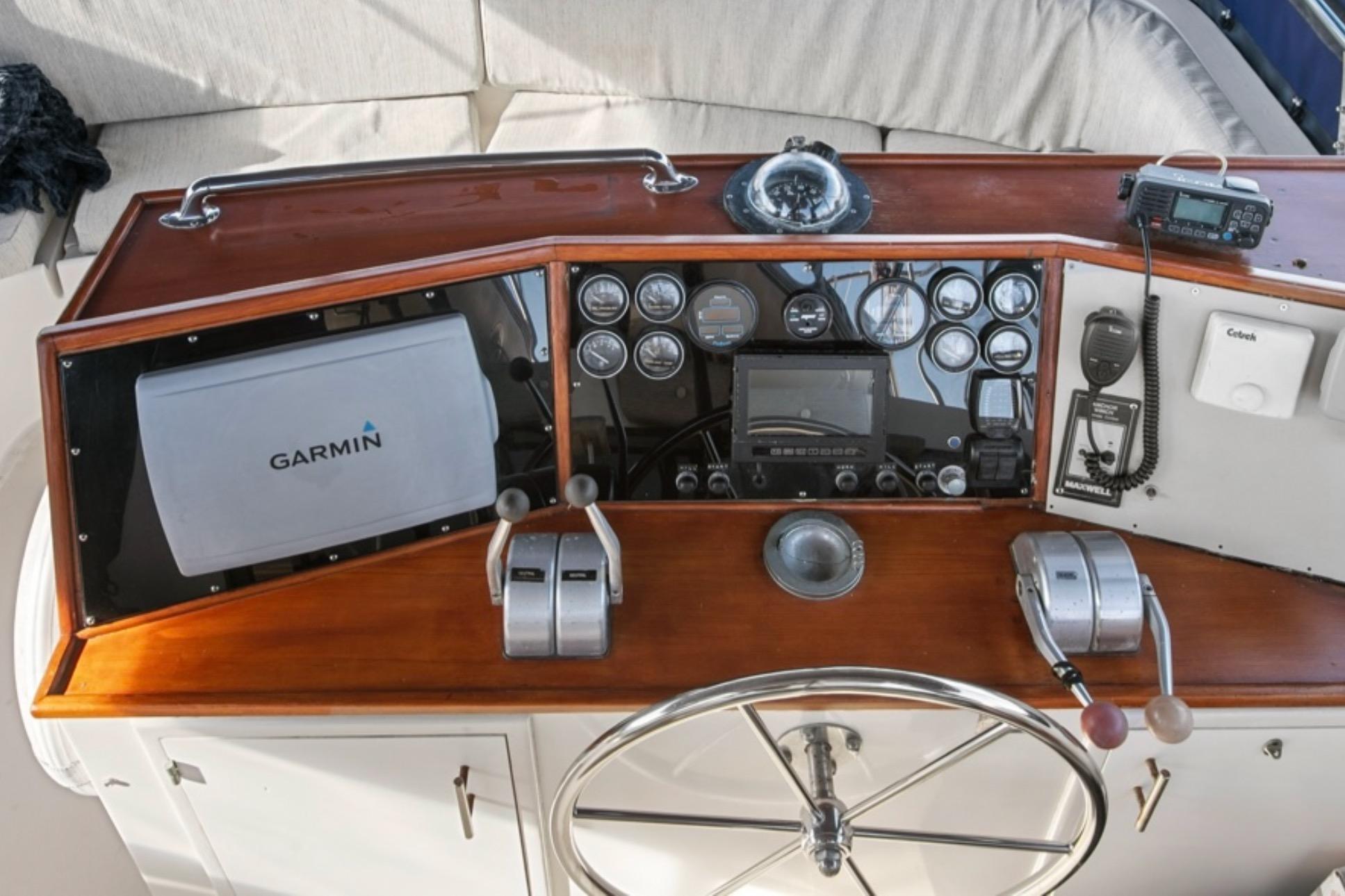 - Additional lower helm station makes this yacht especially well-equipped for long-range cruising and all-weather operation