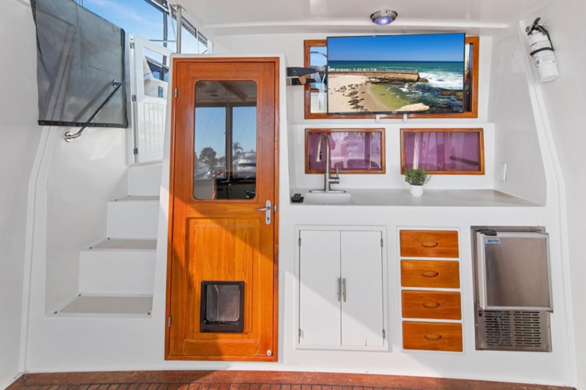 - Located to port, the galley dinette table converts into a sleeping berth for two